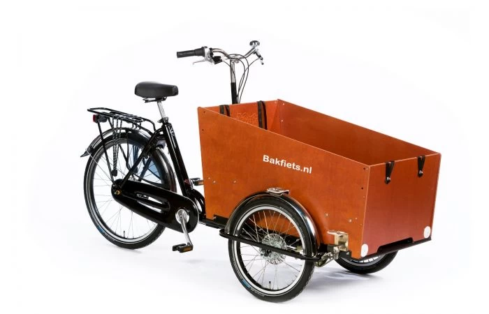 De bakfiets heeft een lage instap en het zwaartepunt ligt laag bij de grond.