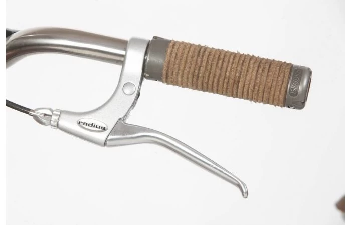 Het verschil ten opzichte van de Classic: Brooks leren zadel en handvatten, bredere spatborden, dikke witte banden voor comfortabeler rijgedrag.
