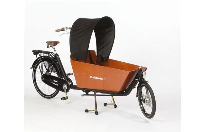 Deze zonne tent van Bakfiets.nl is ideaal voor een zonnige dag.