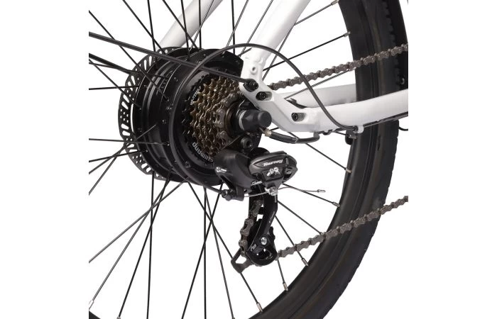 De batterij is op veiligheid getest en is gemakkelijk te verwijderen om op te laden of op te laden terwijl hij op de e-bike zit. Deze fiets is gebouwd om lang mee te gaan en is gecertificeerd om te voldoen aan de hoogste normen voor elektrische fietsen.