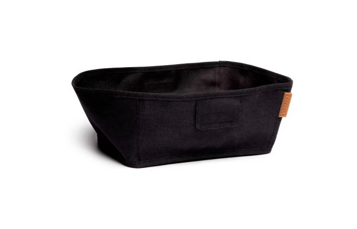 Dankzij deze inlay vallen kleine voorwerpen niet door de openingen van de mand heen. Gemaakt van zwart canvas die aan de binnenkant is voorzien van coating. Daarnaast zijn de zijflappen voorzien van klittenband, waarmee de inlay aan de mand bevestigd kan worden.