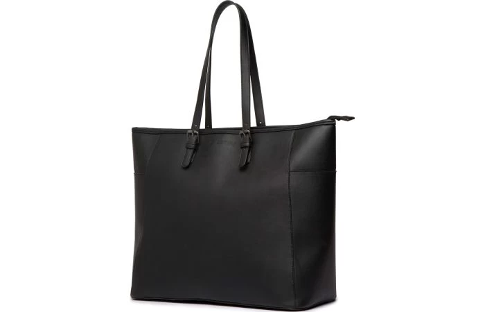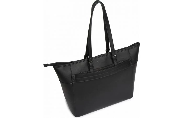 Schoudertas van PUleer, met vak voor 15 inch laptop, binnen vakjes en ritssluiting in zwart of bruin.