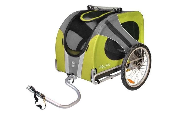 Het verlaagde zwaartepunt en de trekstang in het midden verzekeren stabiliteit en veiligheid terwijl de 20 inch wielen zorgen voor een comfortabele fietstocht. Het raam aan de voorzijde bestaat uit twee delen waardoor er een deel geopend kan worden voor uw hond. De reis wordt extra comfortabel door het hoofdkussen voorin. De kar heeft reflectiestrepen op de voor- en zijkant. Het materiaal beschermt tegen UV-stralen, regen en krassen en de antislip bodem is afwasbaar. Te openen aan de voor- en achterzijde.
