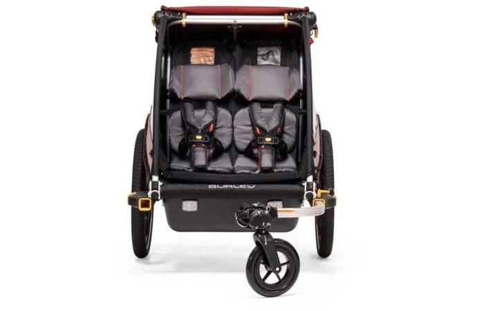 De heavy-duty Cub X kid fietsaanhanger en kinderwagen kunnen moeilijk terrein aan terwijl ze de kinderen comfortabel en veilig houden.Â