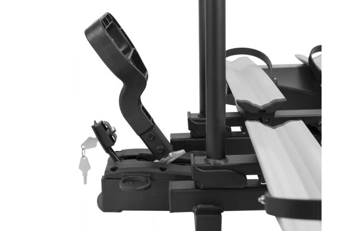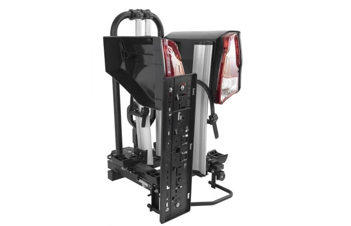 Compact en lichtgewicht, Antares is de nieuwe opvouwbare fietsendrager op de trekhaak met snelsluitsysteem, gemaakt met een stevig stalen frame en grote aluminium wielrails. Ideaal voor E-bikes en Fat Bikes. Antares is uitgerust met een trapgestuurd kantelsysteem en dubbele diefstalbeveiliging voor de fietsendrager en de fietsen.