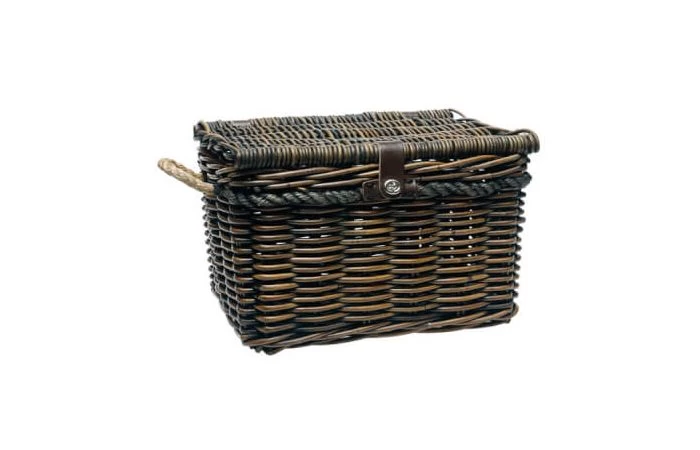 New Looxs mand Melbourne large bruin, met deksel en touw. Handige ruime fietsmand voor montage op de voordrager, met deksel en draaisluiting. Gemaakt van stevig rotan materiaal. Het decoratieve touw rondom de mand wordt ook gebruikt als handvat. Exclusief bevestigingsmateriaal. Afmetingen: 45x33x31 cm, 45 liter.