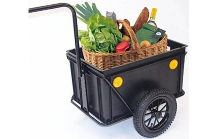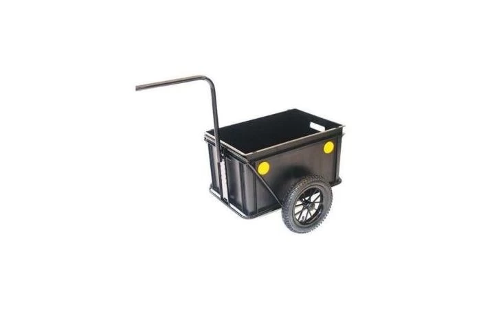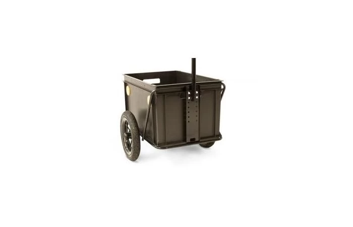 De kunststof bak heeft een inhoud van 60 liter. De dissel wordt bevestigd aan de zadelbuis en is makkelijk los te koppelen.