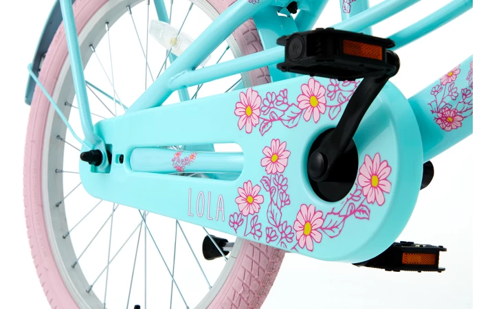 Hela, hola, Lola! Met deze kinderfiets verken je jouw wereld met een smile. De zachte kleuren en vrolijke prints toveren een brede lach op ieders gezicht. Op de voor- of achterdrager neem je al je spulletjes zelf mee, met een hand- en terugtraprem sta je stil wanneer jij dat wil. En door het in hoogte verstelbare zadel en stuur kun jij lekker lang genieten van deze fiets. Verander jouw straat in een droomwereld en have some fun!