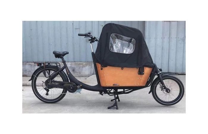 De Superior E-bike tweewieler bakfiets kan worden ge-upgrade met verschillende accessoires, een bakfietshoes, een fietstas en een extra slot.