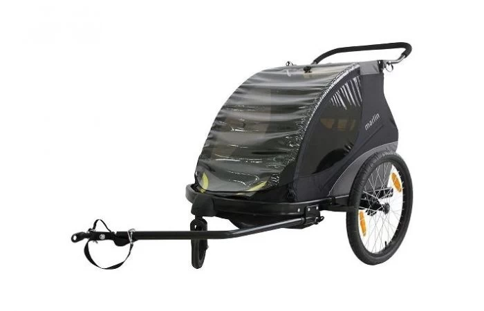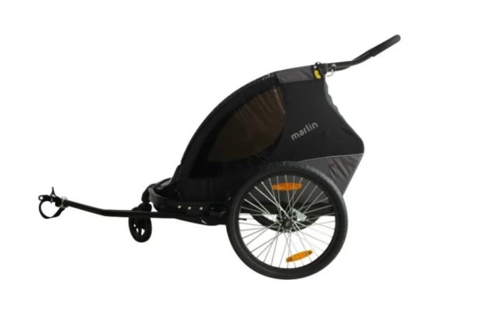 De Marlin aanhanger is geschikt voor maximaal twee kinderen. De kajuit is ruim en voorzien van grote ramen waardoor de kinderen een geweldig uitzicht hebben. De kinderen zitten veilig vast in de twee comfortabele stoelen met behulp van het verstelbare 5-puntsgordel. Achter de stoelen bevindt zich een ruime kamer zodat u gemakkelijk bagage en meer kunt meenemen. De cabine is voorzien van een sterke cabinekap, deze beschermt de kinderen tegen weer en wind zodat ze kunnen genieten van de rit.